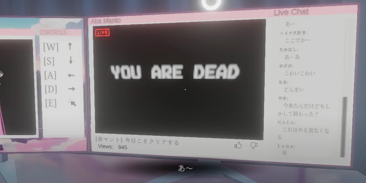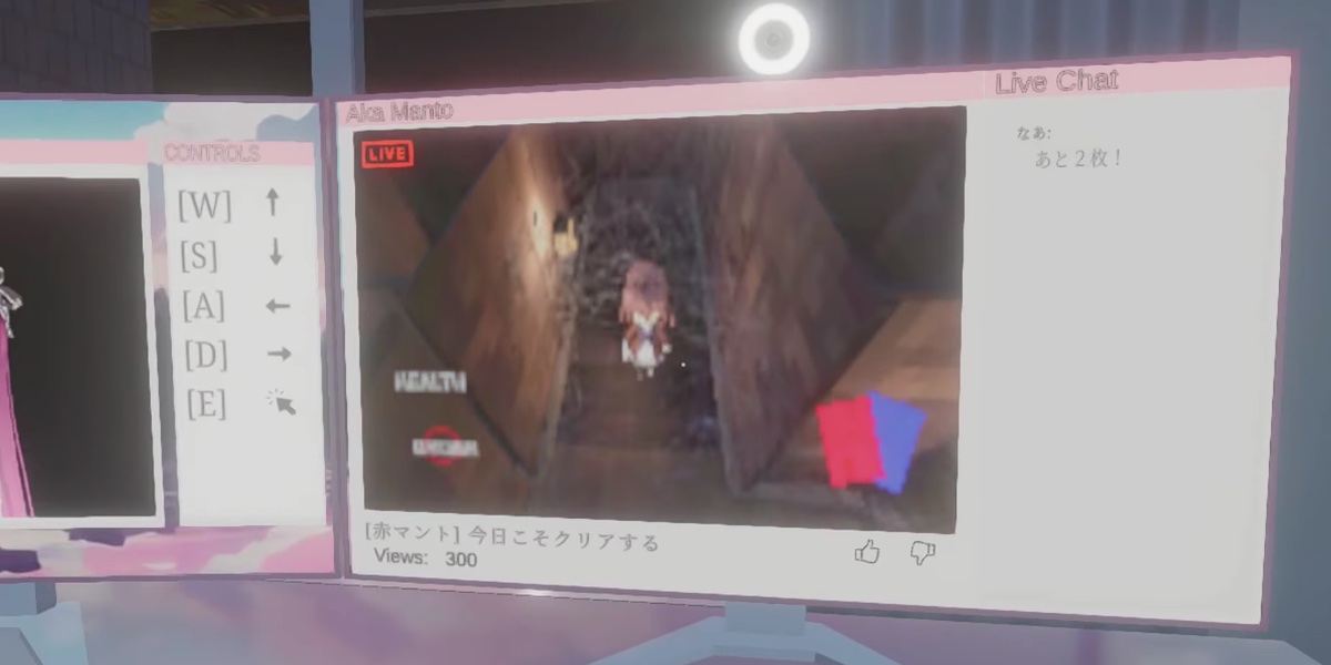 作中で主人公がVtuberとして実況するゲームタイトルは「赤マント」。同クリエイターによる過去作品の一つであるサバイバルホラーがそのままゲーム内に登場。主人公ニイナはこの作品のクリアを諦め、視聴者から貰ったホラーゲームをプレイする事に。