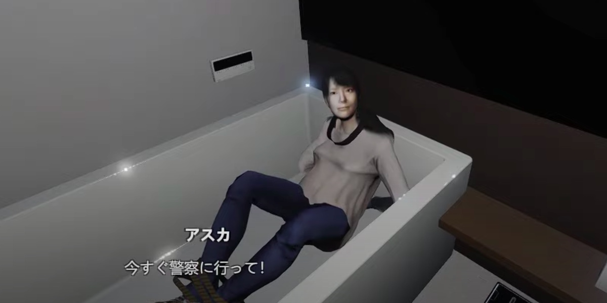部屋を探索するニイナは、風呂場で拘束されているアスカを発見。